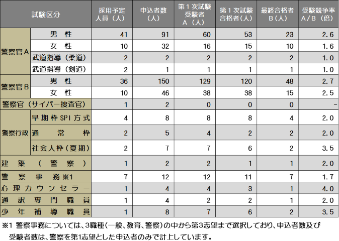 令和7年度警察官等採用試験実施状況 令和6年度警察官等採用試験実施状況 令和5年度警察官等採用試験実施状況 令和4年度警察官等採用試験実施状況 令和3年度警察官等採用試験実施状況 令和2年度警察官等採用試験実施状況 令和元年度警察官等採用試験実施状況