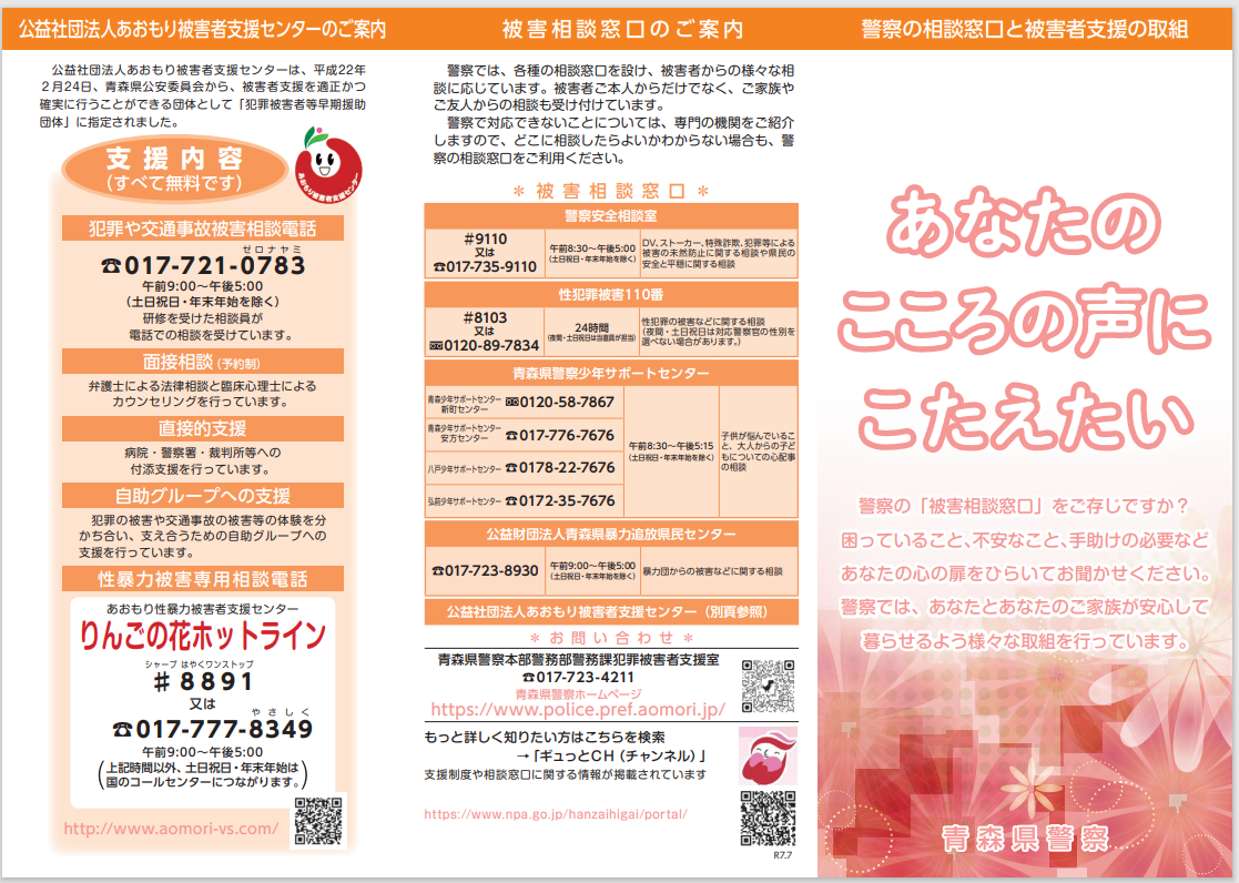 ~警察の相談窓口と被害者支援の取組に関するリーフレットも差し上げています~
