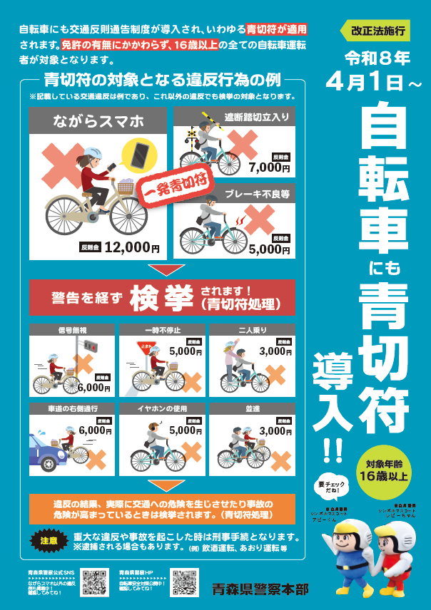 ●自転車への交通反則通告制度(青切符)の導入のチラシは、下記をクリックしてください。